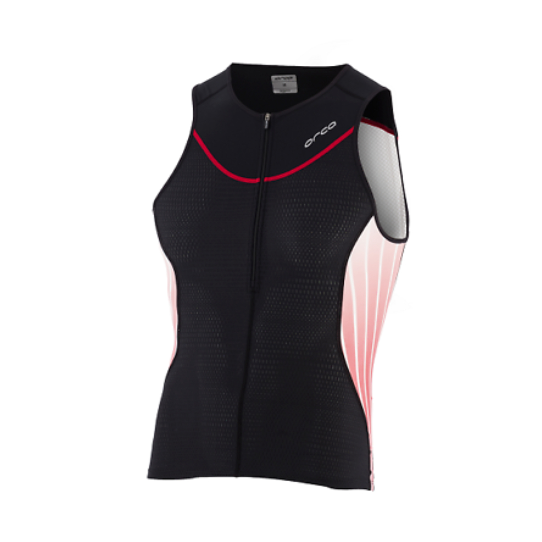 Orca’s Tri-Enduro mesh fabric is on the back of the tank for breathability and wicking. The UPF50+ protection offered by all fabrics used in this tank makes it ideal for race days when you're out in the elements for long periods of time. New to the tank is a distinctive 226 sublimated print detail on the side panels. The top also has a lower cut at the back for increased coverage when cycling and running. Key features for endurance distance racing include the safety elastic pocket, reflective elements for visibility in low light conditions, and a 3-coil front control zip for increased ventilation when required.