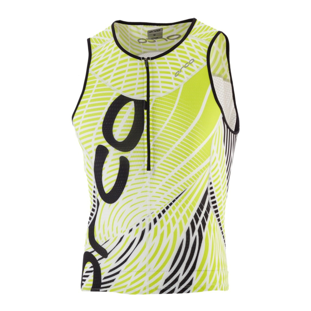 Orca’s Tri-Enduro mesh fabric is on the back of the tank for breathability and wicking. The UPF50+ protection offered by all fabrics used in this tank makes it ideal for race days when you're out in the elements for long periods of time. New to the tank is a distinctive 226 sublimated print detail on the side panels. The top also has a lower cut at the back for increased coverage when cycling and running. Key features for endurance distance racing include the safety elastic pocket, reflective elements for visibility in low light conditions, and a 3-coil front control zip for increased ventilation when required.