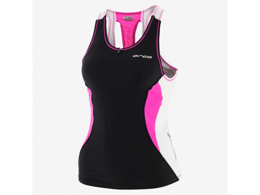 Orca's Core Support Singlet is a true triathlon essential! Its front panel boasts Orca's slick, water-repellent AquaGlide fabric for speed through the swim while the back utilizes their highly breathable, quick-drying Vapour fabric and Tri-Mesh panels for comfort during the bike and run. The contoured internal bra provides excellent support while the covered rear pockets safely stow your race-day essentials. Plus, the longer cut provides greater coverage and reflective accents ensure visibility in low light conditions.